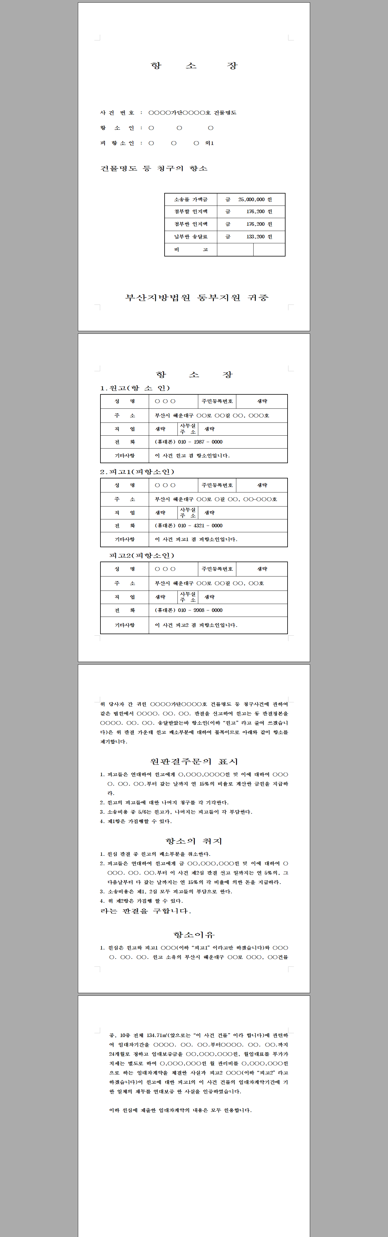 항소장 및 항소이유서 건물명도 등 청구에 대하여 원심에서는 원고의 청구금액 중에서 일부만 인용하고, 나머지 금원에 대하여 기각한 것은 부당하지 않을 수 없어 항소를 제기한 것이며 원심판결을 취소하여 원고가 패소한 금원중에서 최소한 50%는 피고들이 원고에게 지급하는 것이 합당하다며 원고가 항소취지와 같은 판결을 구하기 위해 제기한 항소장 및 항소이유서