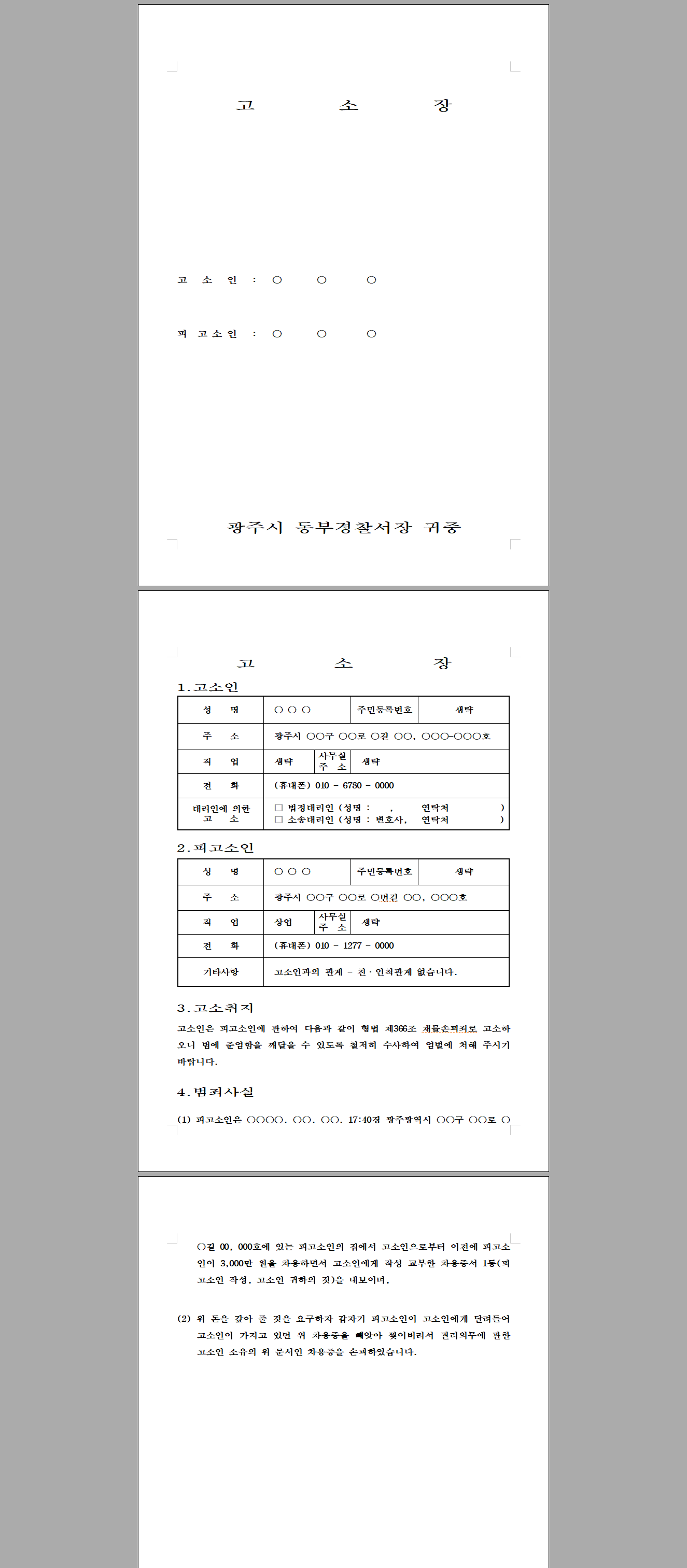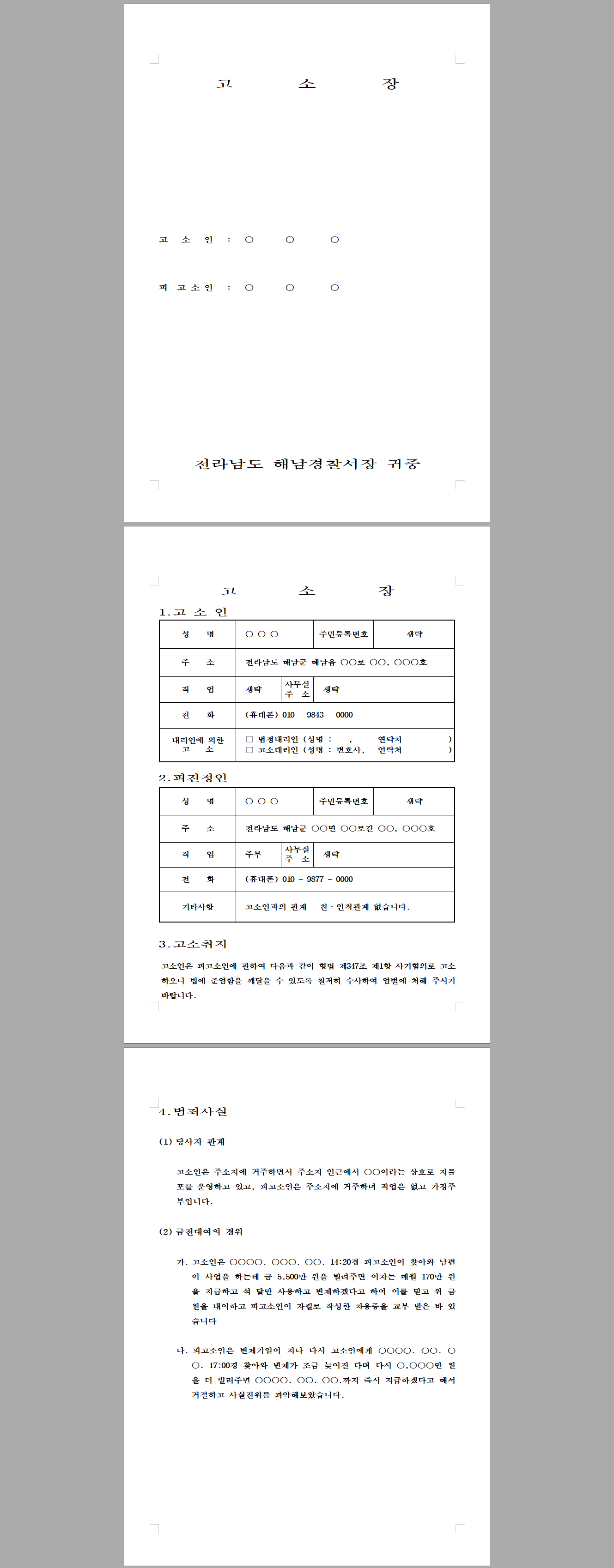 | 214 | 고소장 | 214.고소장 - 사기죄 차용금사기혐의 거짓(기망)으로 변제하는 방법을 속이고 돈을 빌려 편취하여 고소장 최신서식 | 20,000 | 신청하기 | |
