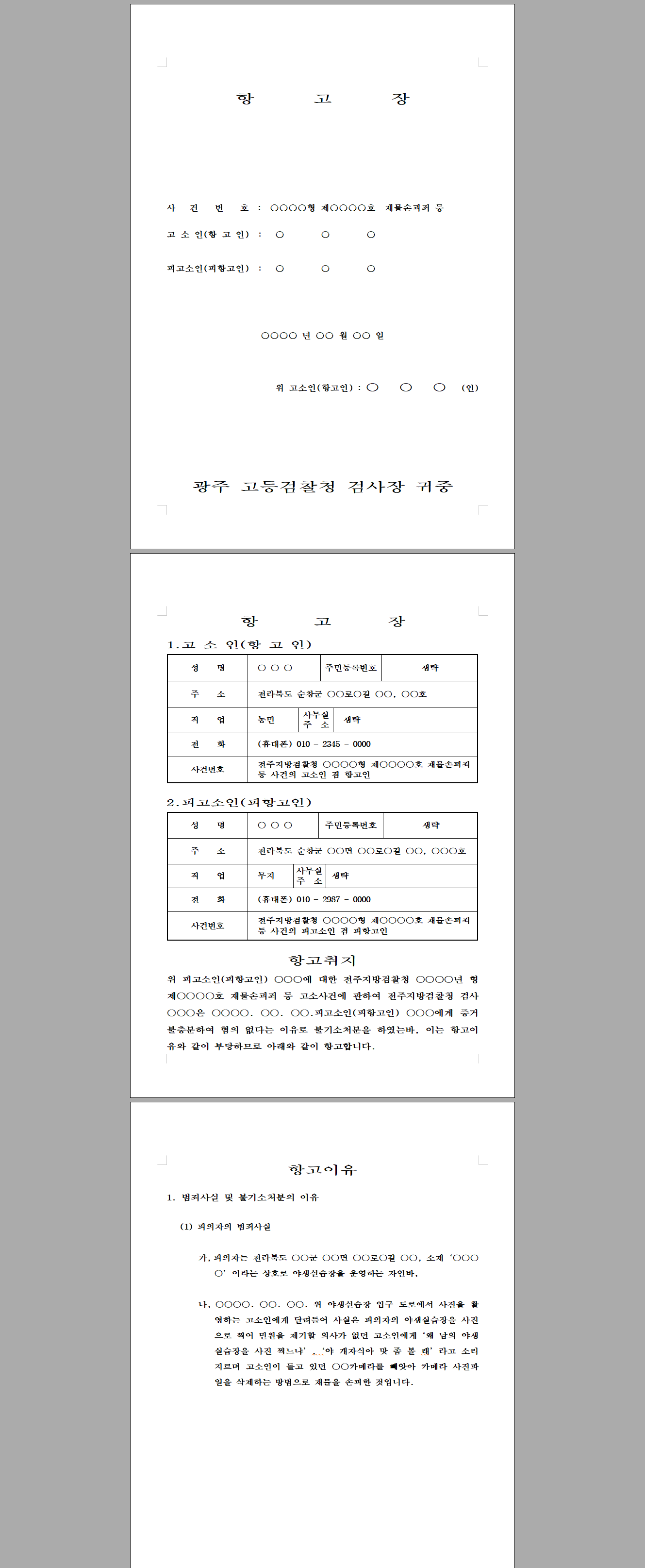 | 42 | 항고장 | 42.항고이유서 - 사기미수 차용증 위조행사 참고인 기소중지 불기소처분 불복 항고장 항고이유 | 30,000 | 신청하기 | |