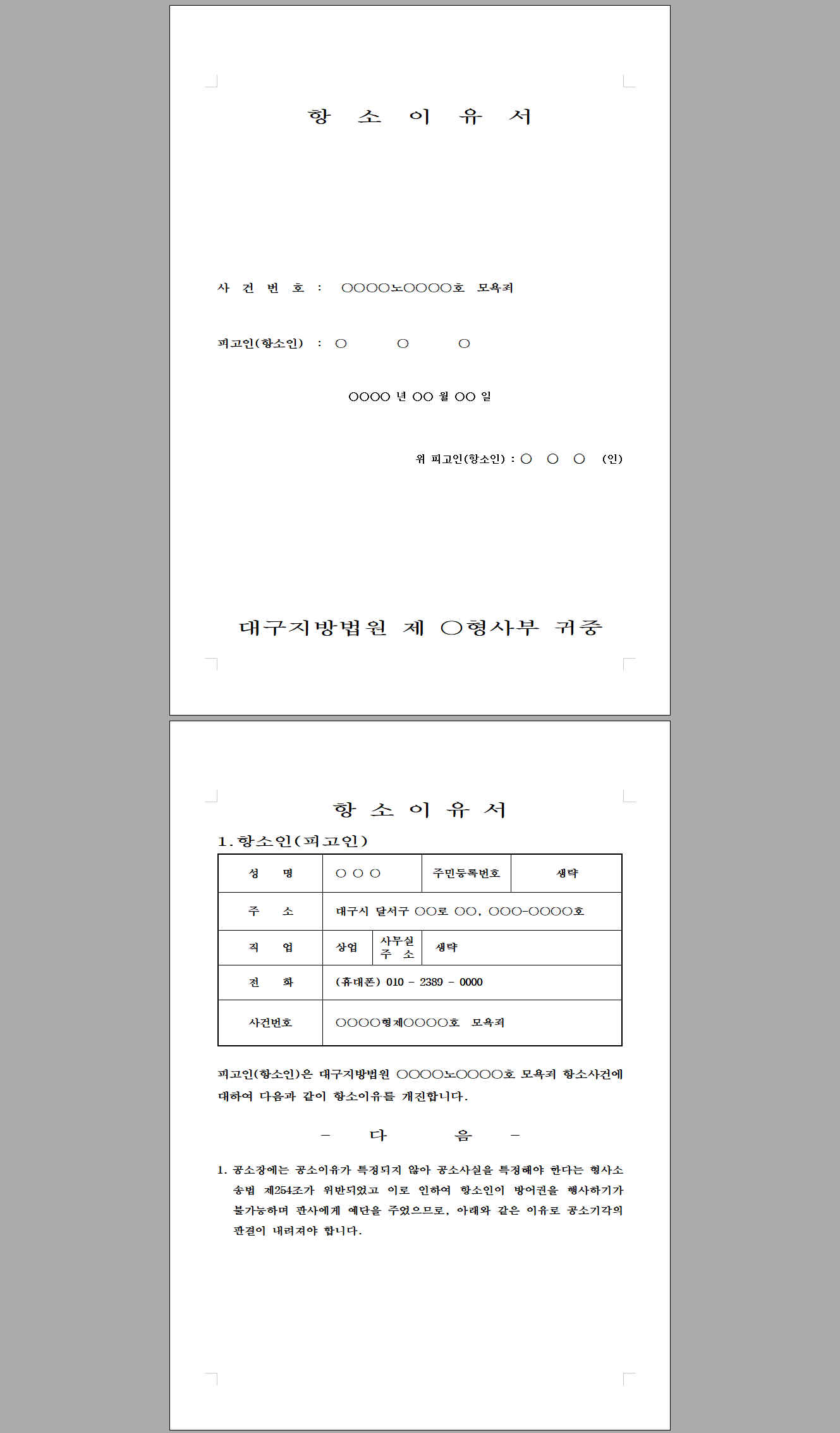 | 20 | 민사항소 | 20.민사사건 항소이유서 - 손해배상(기) 제1심 판결은 판례에 위배되어 파기해 달라는 항소이유서 | 30,000 | 신청하기 |