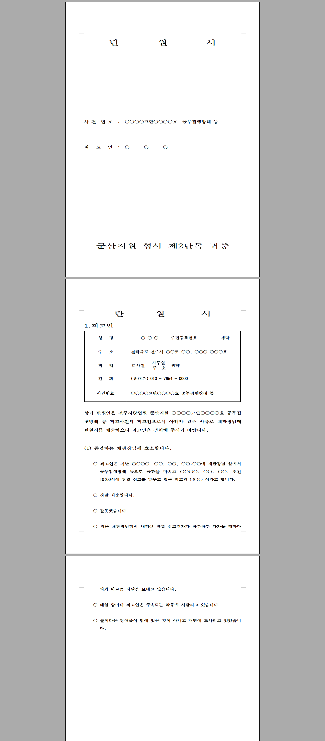 49.탄원서 - 지하철 성추행 송치된 피의자가 검사님께 출근시간대 밀착으로 성추행이 아니라고 누명을 볏겨달라는 탄원서